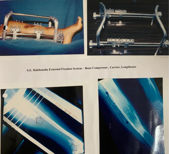 During the long years of war, Military Medical Services expanded significantly and military orthopaedic surgeons gained wide experience and developed novel methods and instruments to meet the demands of managing severe limb injuries. The multipurpose external fixator (Salah-Eddin) and pelvic splints, promoted by Dr M Habboush, are only examples of many.
